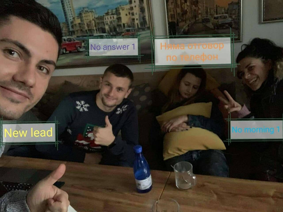 Вот, кстати, как выглядел наш коллектив в конце 2016 года. Тогда целый год, вплоть до 2017, мы были на отметке 30 продаж в день и почти не верили в успешность проекта. Программисты были дорогими и с технологической точки зрения, проект был совсем не рентабельным для нас, конечно же до того, как мы не наткнулись на FormDesigner.ru (справа я @arkanov_vova и @karadzhoff, а слева его брат, который нам до сих пор помогает, две девчонки – это первые менеджеры по продажам с болгарским и греческим языком, наш первый новогодний корпоратив в ресторане)