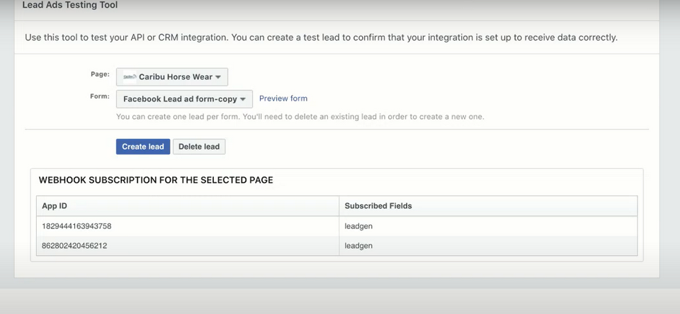Недостаток инструмента тестирования для рекламодателей — создать можно один тестовый лид. Следующие попытки — через его удаление (Detele Lead).