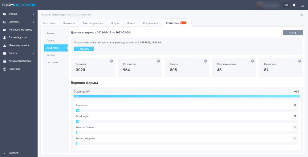 В разделе “Аналитика” мы можем увидеть все воронку квиза и проследить, на каком вопросе пользователи чаще всего прекращали проходить квиз: