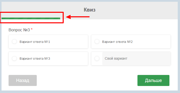 Для удобства пользователей, чтобы они понимали, на сколько вопросов они уже ответили и сколько еще осталось, в квиз можно добавить индикатор прохождения: