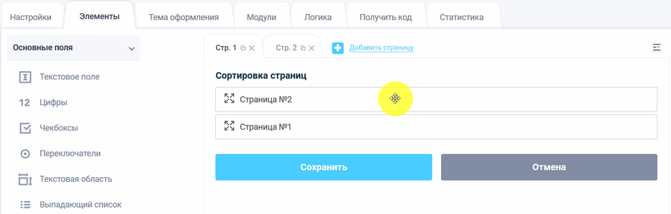 Перед Вами отобразится список страниц и Вы можете переместить страницы в нужный порядок, нажав на необходимую страницу, :