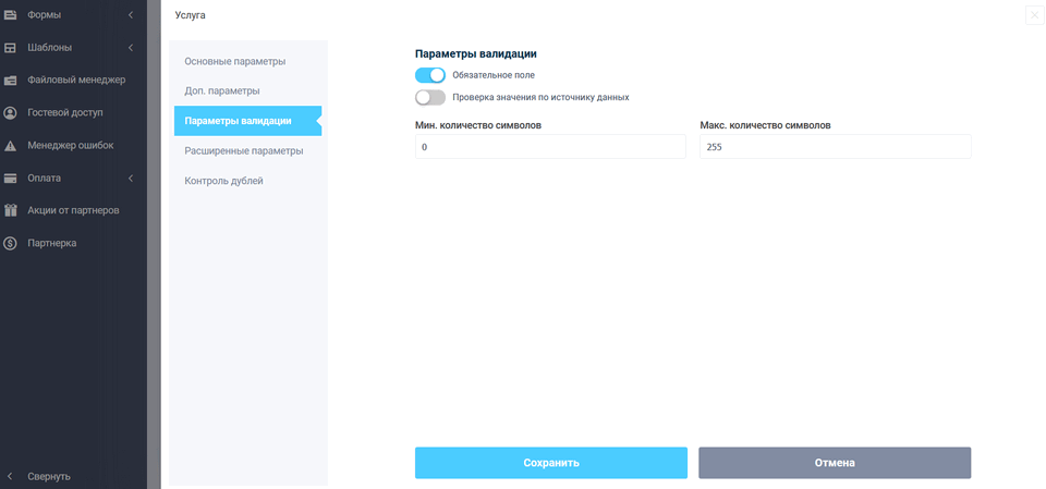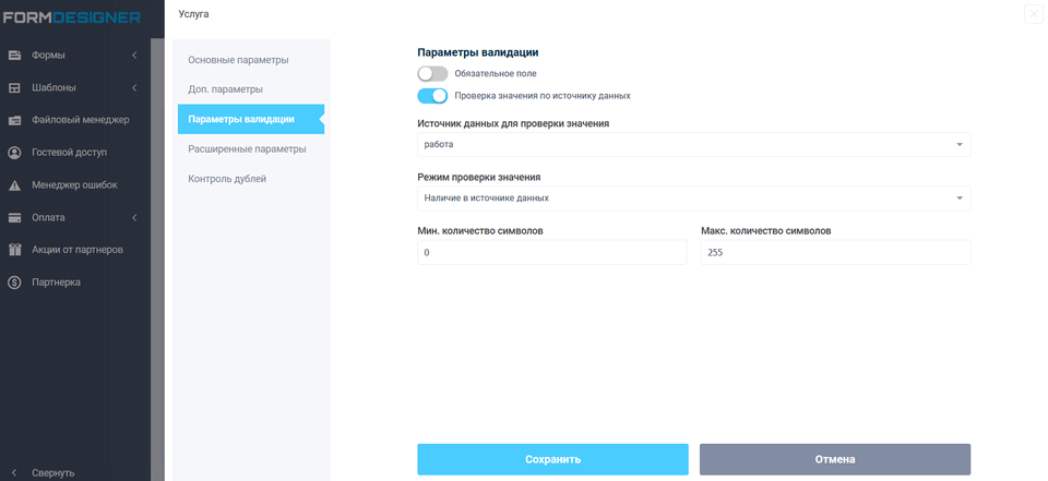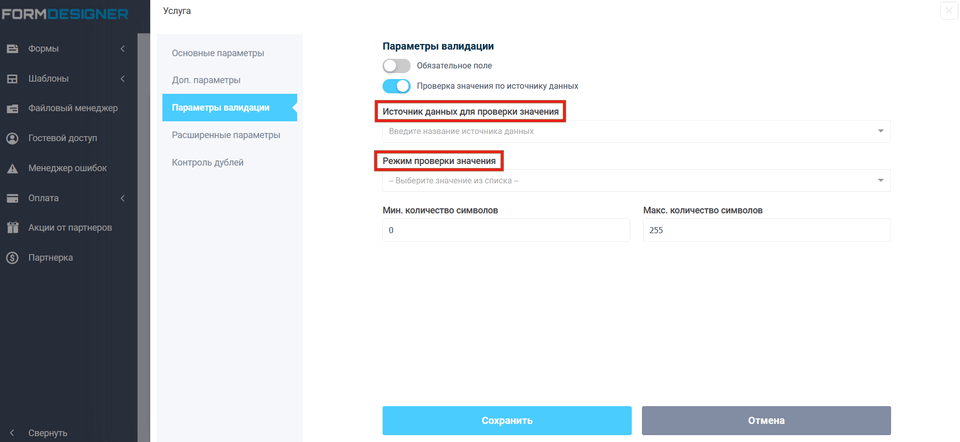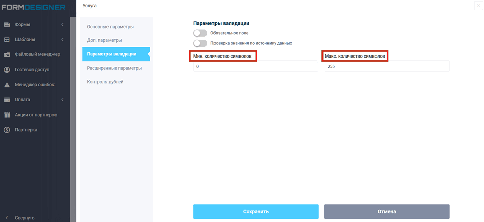 символов, при котором форма будет обработана, а в поле "Максимальное