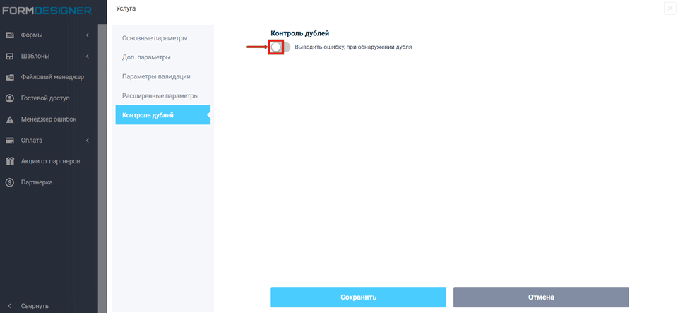 Если активировать опцию "Контроль дублей", форму нельзя отправить дважды с одинаковыми данными.