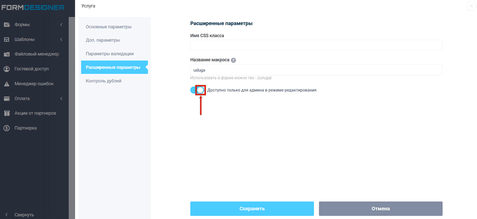 Опция "Включить автосохранение данных в форме" позволяет сохранять введенные данные пользователем и при повторном посещении страницы с формой, эти данные автоматически будут подставлены в форму: