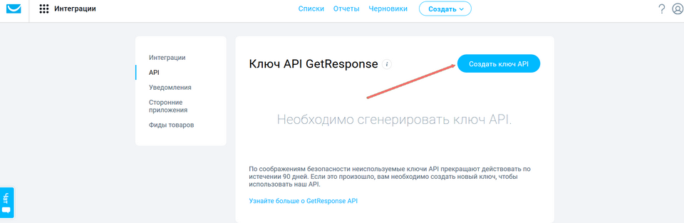 Ключ API для Getresponse