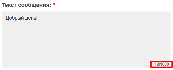 По просьбе одного из наших клиентов, добавили возможность выводить счетчик символов в текстовых полях. Это очень удобно, если у вас есть ограничения, на количество введенных символов. Пользователь сразу видит сколько символов он ввел и какое максимальное значение.