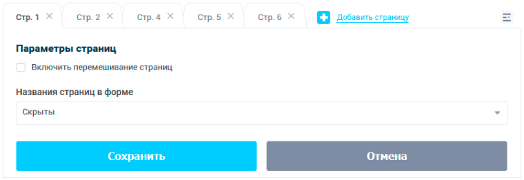 После того, как выберите тип отображения страниц в форме, ниже нужно будет ввести название для каждой страницы. После того, как все данные введены, необходимо нажать на кнопку «Сохранить». Давайте теперь посмотрим, как это будет выглядеть в форме: