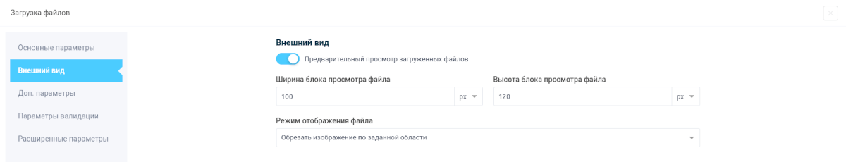 По просьбам многих пользователей добавили возможность включить предпросмотр загружаемых файлов в форме. Для этого, в настройках элемента, необходимо перейти в раздел "Внешний вид" и там активировать переключатель "Предварительный просмотр загруженных файлов":