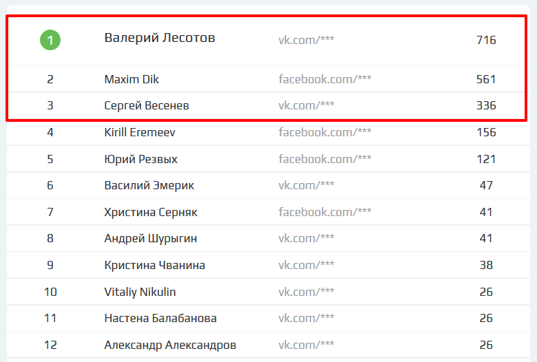 Итак, вот тройка участников, которые набрали наибольшее количество баллов: